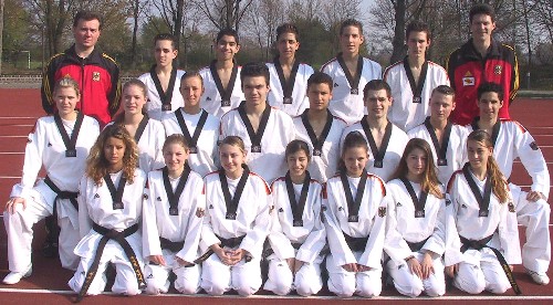 Unsere Fighter für die Jugend-WM Das deutsche Taekwondo-Team für die Jugend-Weltmeisterschaft in Korea mit den Bundestrainern Waldemar Helm (li.) und Markus Kohlöffel (re.) vor dem Abflug . . . . . und nach der Ankunft in Suncheon.