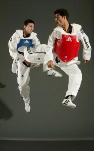 Hadi SAEI BONEHKOHAL (Olympiasieger 2004) und Markus KOHLÖFFEL (Bundestrainer) beim Kampf mit der neuen Weste