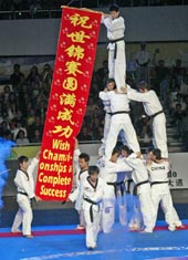 Peking, 17. Mai 2007 - Mit einer großen Auftaktveranstaltung sind heute in der chinesischen Hauptstadt die Taewkondo-Weltmeisterschaften eröffnet worden. Rund eineinhalb Stunden dauerte die Veranstaltung im Changping Stadium, die neben den offiziellen Ansprachen auch jede Menge Musik und Action bot. Fünfzehn Gruppen mit fast 1300 Akteueren sorgten dafür, dass im großen Hallenrund keine Langeweile aufkam. Wie unten berichtet, nehmen in Peking auch zwei Vertreter des BSV teil: Vereins- und Bundescoach Markus Kohlöffel und Daniel Manz, der bei den Herren bis 67 kg gleich am ersten Wettkampftag, also am morigen Freitag, ran muss. In Peking treten Sportler 1704 Kampfsportler aus 124 Ländern an.