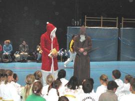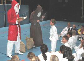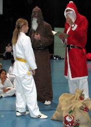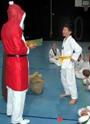 Wie auch bei anderen Nikolausis mussten die jüngsten Sportler auch bein Taek-o-klausi etwas zum Besten geben; nicht unbedingt ein Gedicht, aber schon mal einen Ein-Schritt-Kampf oder eine Selbstverteidigungstechnik. Für die "Braven" gab es auch was aus des Knecht Rupprechts Sack.